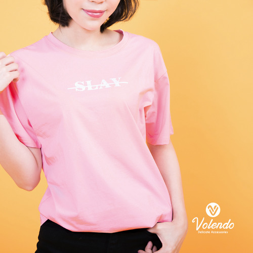 網紅粉嫩寬鬆大學時尚粉紅短袖T恤 - 5b32aa544e22a6ccc10019ea